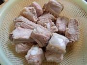 用一汤匙料酒,一汤匙生抽,半汤匙老抽,二汤匙香醋(不是白醋)腌渍20分钟。