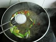 炒锅倒油爆香葱姜干辣椒。
