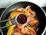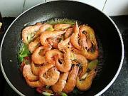 把大虾倒入再加入10克红油。