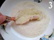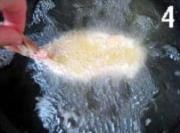 鸡蛋液、面粉、盐、清水、胡椒粉制成调味糊,将收拾好的虾在调味糊里蘸一下。