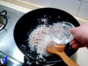 然后烹入绍酒炒匀。