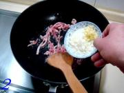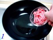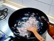 炒勺上火烧热,注入凉油下入肉丝煸炒。