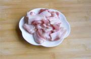 将带皮五花肉切片。
