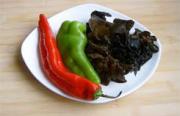 蒜切片,青椒去蒂斜切成长条。