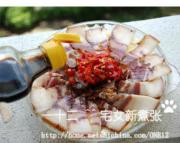 上面均匀的铺上熏肉等~~最后加入一大勺剁椒~再稍微浇一点生抽~~最好呢是可以拌入一些油,不过夏天了 这部可以省去,提鲜的话加一勺糖就可以上锅蒸了。