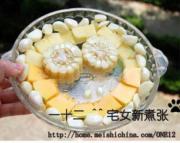 糯玉米切片,和米饭一起蒸熟,如果是水果玉米就不必了,洗净切片既可。