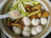 .将所有原料放入砂锅中,再加入骨肉汤大火烧开,转小火慢炖至熟。