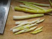 油蘑洗净,小笋切斜刀片。