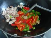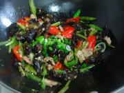 放入青红椒,调入盐翻炒断生。
