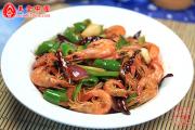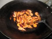 将对虾下锅煸炒至香。