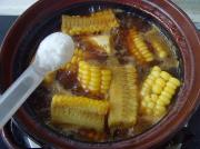 再放入玉米,一同煲制约10-15分钟。
