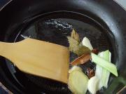 锅置火上少许油烧热,煸香八角、桂皮、葱姜蒜,推到炒锅一侧。