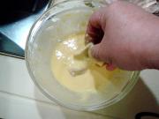 把面粉倒入鸡蛋碗里,把蛋和粉搅匀成全蛋面糊。