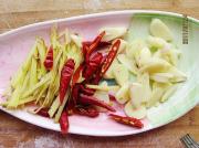 姜切丝,蒜切片,红椒切丝。