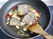 将腌好的鱼抹干水份,入油锅中煎。