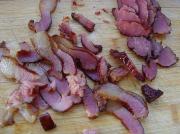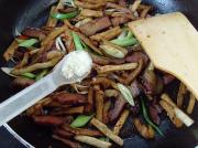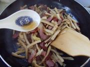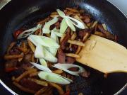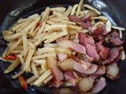 倒入腊肉略炒,待腊肉微微出油,倒入萝卜干段。