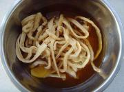 烹入少许黄酒、生抽、加适量清水盖上锅盖焖一会。