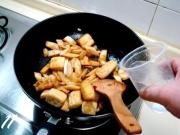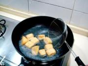 把炸豆腐飞水去掉油脂捞出备用。