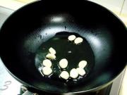 另起锅烧热,注入适量烹调油下入蒜瓣煸炒。