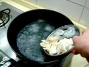 把海鲜料飞水捞出备用。