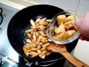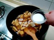 蒜瓣煸至微黄时下入姜片爆香。