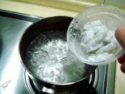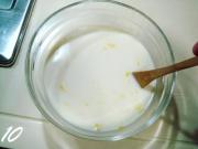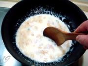 牛奶下锅后,用木勺向一个方向搅拌,此时应改用中火操作。
