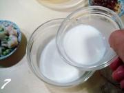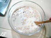 舀一汤匙鲜牛奶把2克干淀粉澥开。