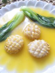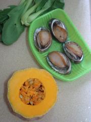姜切成粒,上汤、南瓜汁、鲍鱼汁、水淀粉备好。