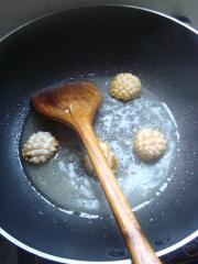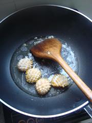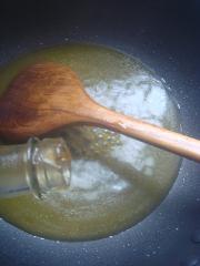 另锅下油爆姜粒,然后把鲍鱼放入,倒入上汤、2汤匙鲍鱼汁和1/2茶匙盐。