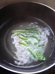 锅下适量清水烧开后,放入1茶匙盐,再放入小棠菜焯烫。