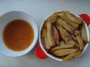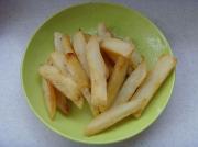 土豆洗净去皮切粗条,入油锅炸至金黄色捞出待用。