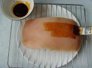 准备生抽、老抽混合,均匀涂抹在五花肉上,尤其是皮部。