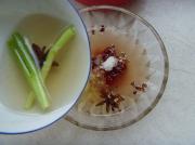 豆腐乳放入碗中,加入花椒、八角,用煮肉原汤调开。