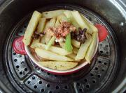 将土豆条码在碗里,倒入原汤,移置火上大火1-1.5小时蒸透.