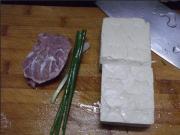 豆腐2砖切正方形,猪肉切方丁用生粉,生抽油拌匀备用。
