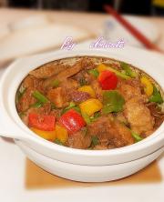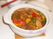 放入菜椒大火烧至汁差不多收干。