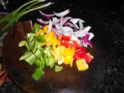 洋葱,菜椒洗净切小块。