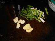 葱切段,蒜去皮,姜切片。