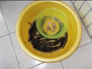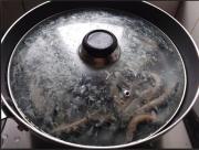 清理泥鳅:干锅烧热改小火,倒入泥鳅,迅速盖上盖子防止泥鳅弹跳出来。等泥鳅都不动了,铲起再用水冲净鱼身上的白潺。