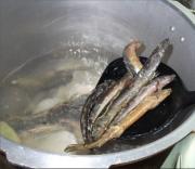 加入煎过的泥鳅,姜片,盖锅盖小火煲。