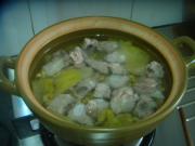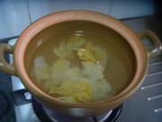 沙锅里放适量清水,将炒香的咸菜倒入。
