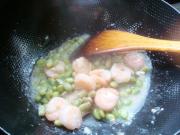 锅里放油,4成热放入虾仁。