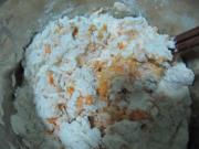 加入胡萝卜汁和化开的酵母水,用筷子搅成雪花状,再用手揉成团。