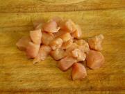 鸡胸肉切成2厘米见方的肉丁。