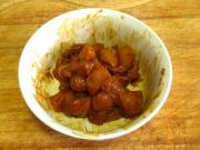 放入腌制好的鸡肉。