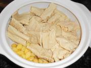 先把白果和腐竹放入瓦煲内。