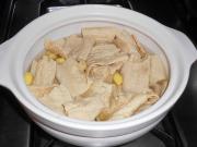 倒入鸡汤和清水煮至腐竹软透。