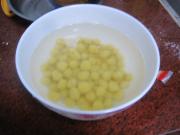 把煮熟的芒果小圆子放入凉白开中冲洗两遍后捞出。