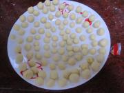 把糯米团用手团成一个个小圆子。