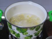 一锅水烧开后放入芒果小圆子。